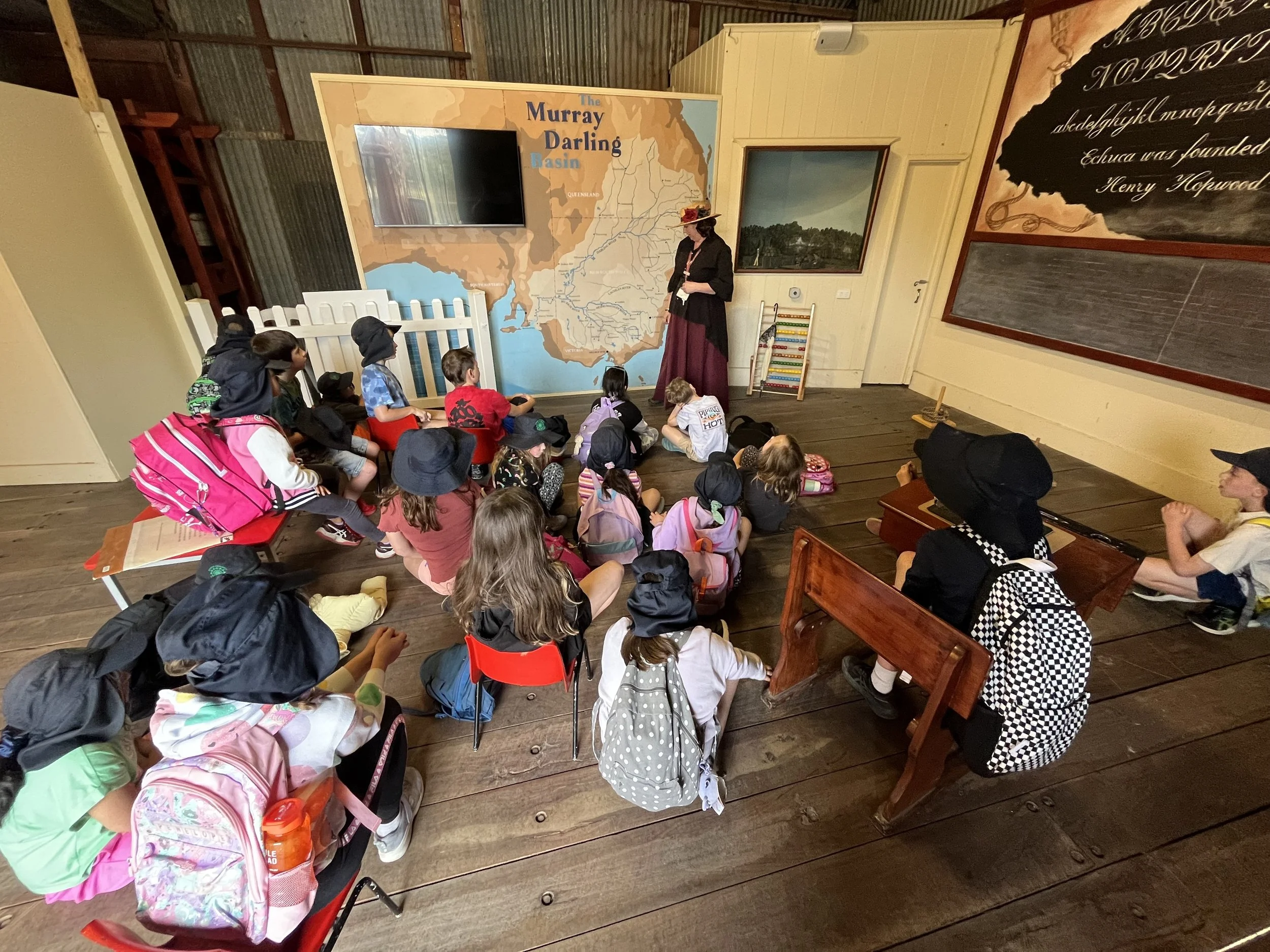 This morning, our Grade 3s set off on an exciting adventure! After a quick stop in Heathcote, we zoomed up to Echuca. Once we arrived, we enjoyed a delicious lunch before being treated to some fantastic tours of the Port of Echuca. Then came the highlight of the day – boarding the PS Pevensey for an incredible trip down the Murray River, which was simply AWESOME!